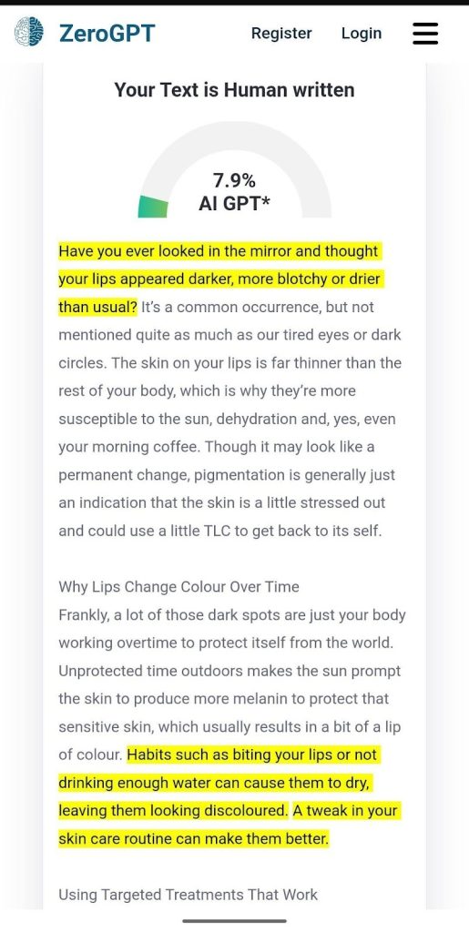 Frankly, a lot of those dark spots are just your body working overtime to protect itself from the world. Unprotected time outdoors makes the sun prompt the skin to produce more melanin to protect that sensitive skin, which usually results in a bit of a lip of colour. Habits such as biting your lips or not drinking enough water can cause them to dry, leaving them looking discoloured. A tweak in your skin care routine can make them better.